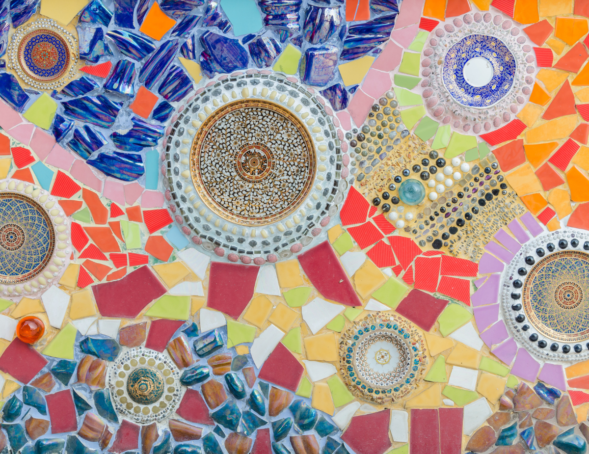 Vibrant glass mosaic tiles that add color, texture, and elegance to walls and surfaces.